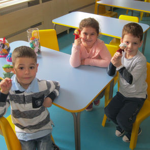 Психологът г-жа Емилова работи с децата и за развитие на фината моторика, на интерес към цветове и форми чрез различни изобразителни дейности по проект: "Активно приобщаване в системата на предучилищното образование."